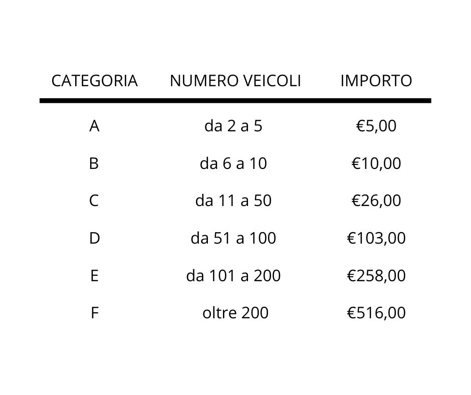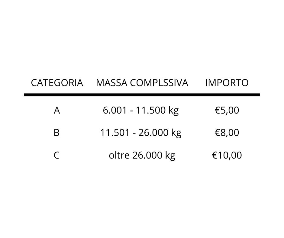 - Quota per ciascun veicolo con massa complessiva superiore a 6 tonnellate.